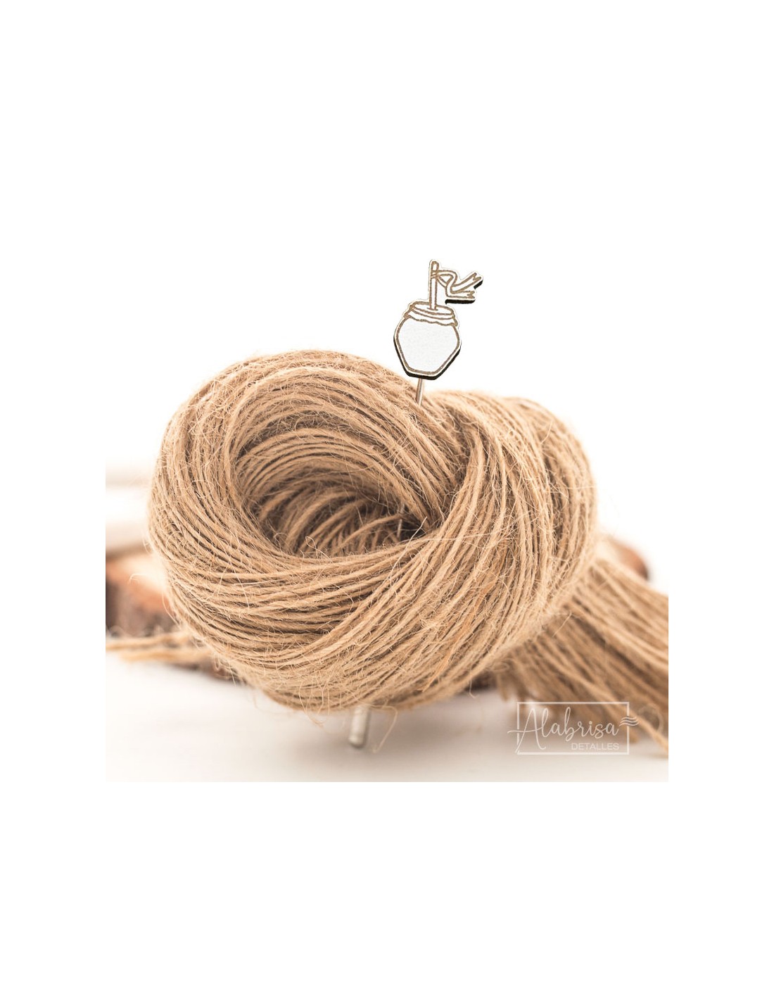 Este alfiler de madera DM laminada en blanco con forma de zambomba es el detalle más original para tus invitados. Combina tradición, música y alegría en una pieza artesanal con acabado elegante. Perfecto para bodas de invierno o con toque navideño.